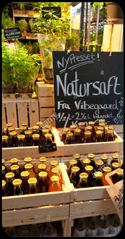 Les jus de fruits proposés sur les tables et dans les bar danois sont remarquables. Leurs goûts sont purs et transcrivent parfaitement la pureté et l'authencité des fruits pressés. Notre préférence va au jus de rhubarbe doux et acide à la fois et à l'extraordinaire jus de fleur de sureau au goût si atypique mais d'une finesse rare.