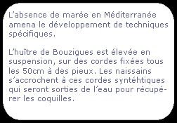 permirent l’essor de l’ostréiculture à Bouzigues. En effet, l’absence de marée obligea la mise en place de techniques spécifiques.