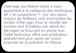 L'élevage sur filières s'est développé pour gagner de nouveaux espaces de production mytilicole en haute mer sans surcharger les