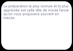 C’est le plus souvent farcie qu’on la retrouve proposée à la carte des restaurants et que la préfère les stambouliotes.
