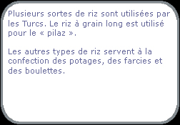 Le riz est un élément incontournable des menus turcs. Il correspond à ce que représente la pomme de terre dans l’alimentation des