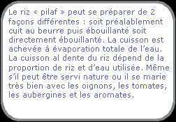 Un mode de cuisson du riz prisée des stambouliote est le riz « pilaf ». Si le « pilaf » convient également à la semoule ou au